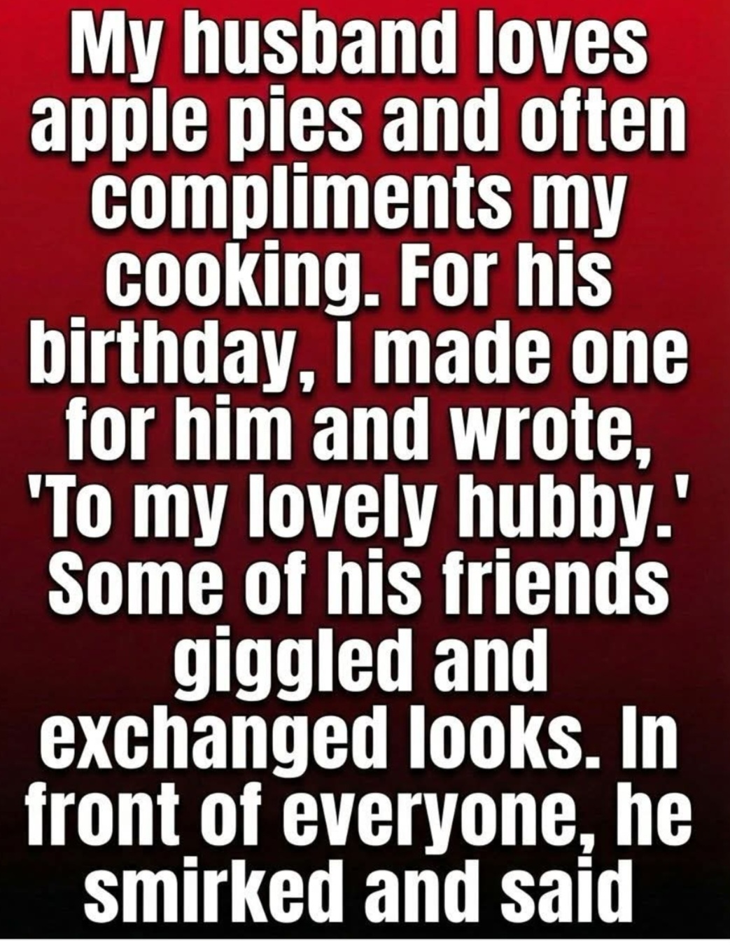 Lena had always believed food was her love language. Her husband, Aaron, adored apple pie, and every time she baked one, his delight filled their home with warmth. For his birthday, she wanted something simple and sincere. She spent hours perfecting the pie, brushing the crust until it shone and writing a small message on top: “To my lovely hubby.” It was meant only for him, a quiet expression of love.