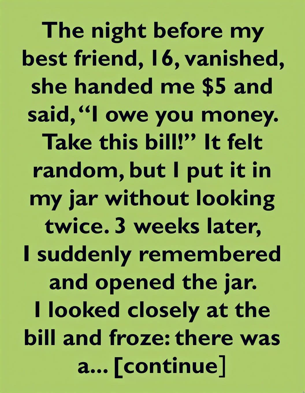 The night before my best friend disappeared, she handed me a $5 bill and said, “I owe you money. Take this bill!” It seemed random — just another one of her quirky gestures — so I smiled, took it, and dropped it into my savings jar without giving it another thought. I had no idea that moment would become the last time I ever saw her.