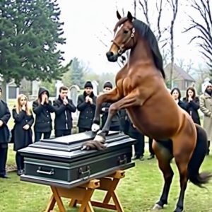 As she reached the coffin, Astoria reared up, her hooves striking the lid with a force that echoed through the still air. The sound was startling, like thunder ripping through a calm sky. The lid gave way with a sickening crack, and the crowd gasped collectively, horror and disbelief etched on their faces.