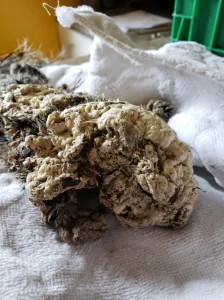 Loosening the foam from the squirrel’s fur proved to be a laborious process, necessitating time, patience, and the application of rubbing alcohol. Dr. Eagan noted the remarkable hardness of the foam. When alcohol proved ineffective, she carefully combed out the foam, resulting in fur loss and skin abrasions.