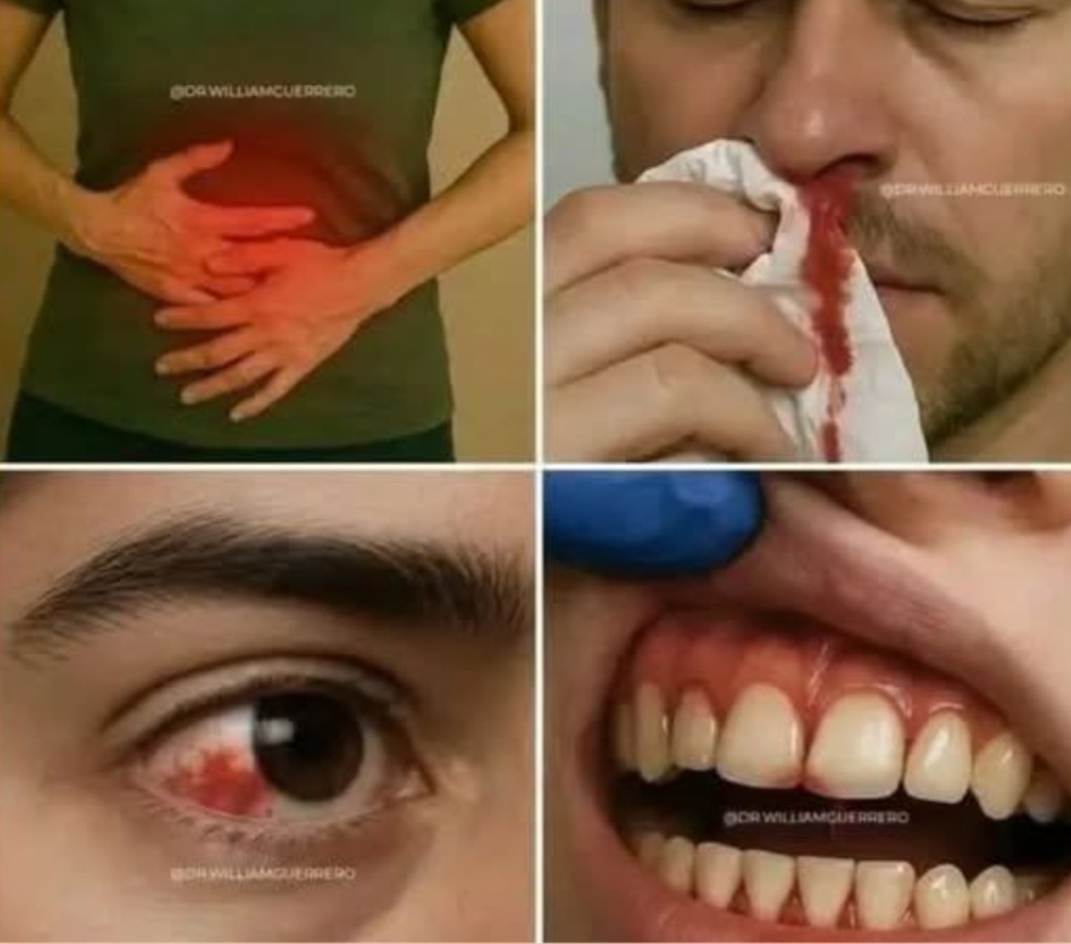 Symptoms like those illustrated in the image—though common—should not be ignored if they persist or worsen. Abdominal pain, nosebleeds, red eyes, and bleeding gums may indicate conditions ranging from mild to serious. The key is to monitor symptoms carefully and consult qualified healthcare professionals rather than rely on speculation or misinformation.